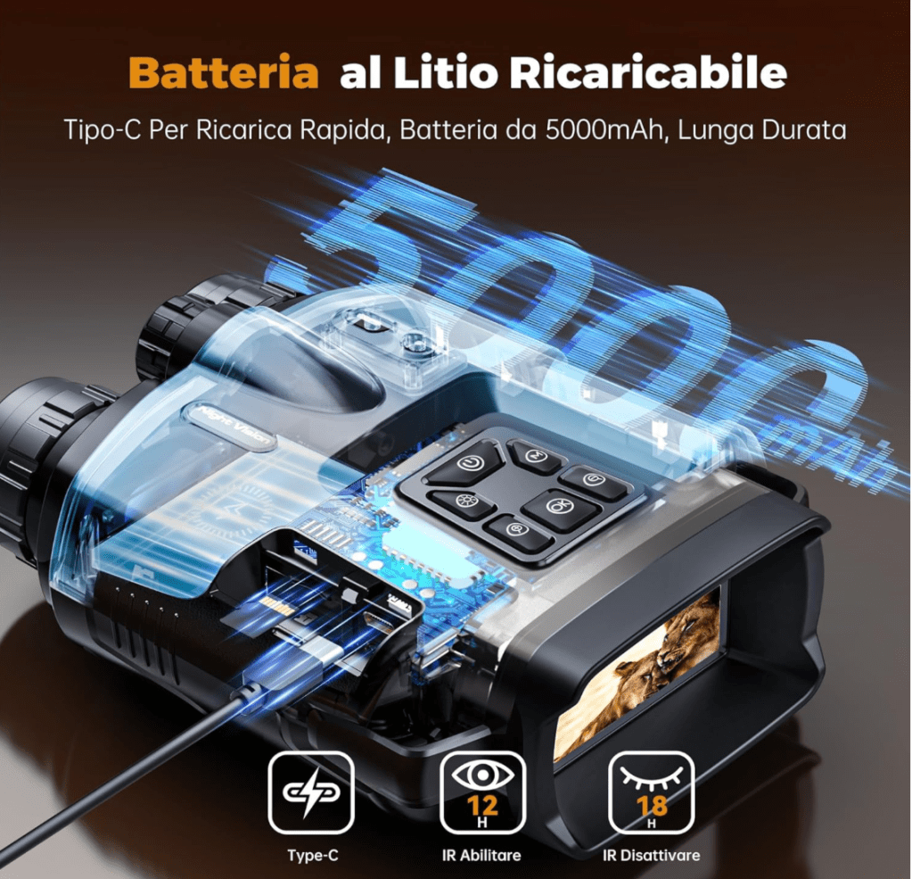 Infine, devo menzionare anche la batteria di lunga durata dei binocoli TKWSER Visione Notturna 4K. Anche dopo ore di utilizzo continuo, la batteria ha mantenuto una durata eccezionale, permettendomi di godere appieno dell’esperienza di osservazione senza preoccuparmi di dover ricaricare frequentemente.